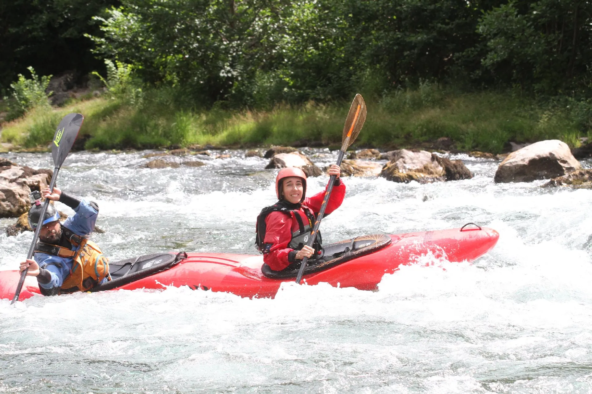 – Seul avec votre guide à bord d’un vrai kayak deux place à jupe, progressez et apprenez à naviguer en autonomie, sur des rivière de niveau facile à moyennement difficile.